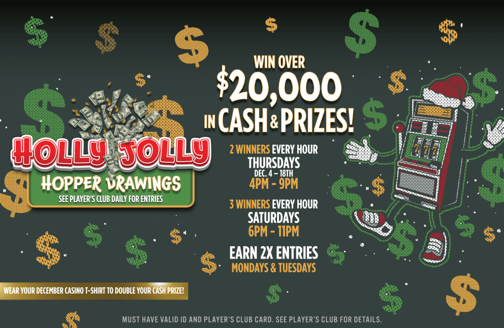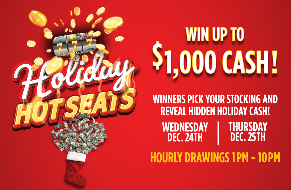 join us saturdays in december – 2 winners every hour on thursdays, 3 winners every hour on saturdays! Win over $20,000 in cash & prizes!