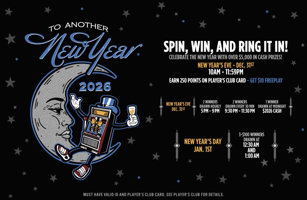 bE SURE TO JOIN THE PLAYERS CLUB! nEW MEMBERS AUTOMATICALLY QUALIFY FOR A $5 FREEPLAY!