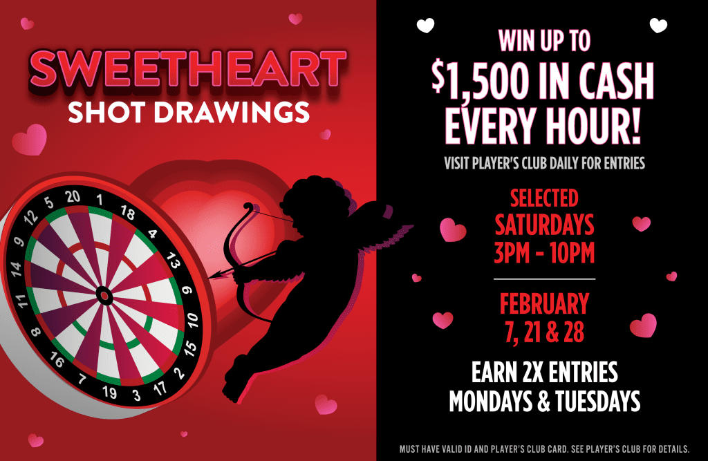 win up to $1,500 in cash every hour on selected saturdays from 3 pm to 10 pm. earn 3x entries on mondays and tuesdays.